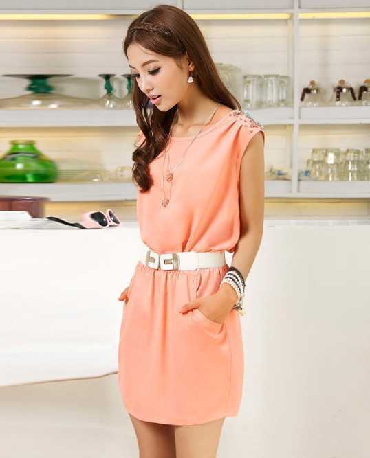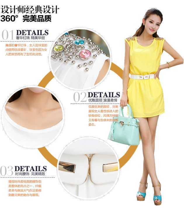 肩部有点珠钉的装饰更显精致品味,优雅范儿十足的裙子,用腰带简单搭配一下既显腰线又显瘦,很适合OL上班穿着的搭配,穿上高跟鞋,干练的职场丽人形象瞬间展现出来。