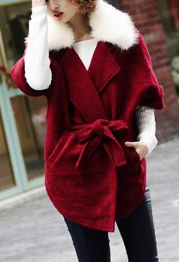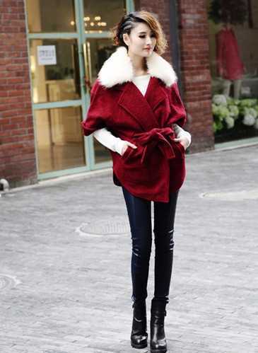 奢华高贵雪白的毛领,独特个性的酒红色衣身,一件简单的大衣配上帅酷的紧身裤和欧美范的高跟靴,演绎出高贵时尚的女王范,侧一边的长刘海微卷,凸显出浓郁的女人味,如此高贵女王范搭配定成为街上引人瞩目街拍达人。