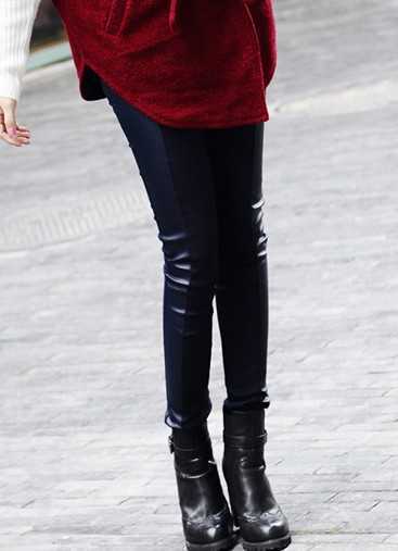 紧绷纤细的下身,与宽松毛呢大衣搭配完美结合,凸显出完美身段,搭出时尚女王范。