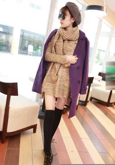 简约利落的毛呢大衣版型,披搭在肩上潮流时尚穿法,内搭米黄色针织长衫,阳光从透明玻璃照射进来,打亮整体装扮效果,产生朦胧美的美感,走起街拍达人范儿!
