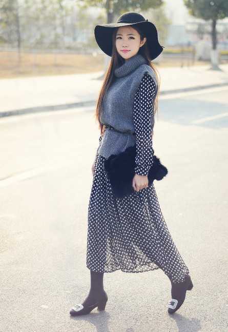 仙美飘逸 感十足的长裙,外搭时尚温暖的毛衣马甲,完美展现女性优美的一面,随意搭配小香风淑女鞋 ,穿出优雅女人味,是新年约会最佳搭配。