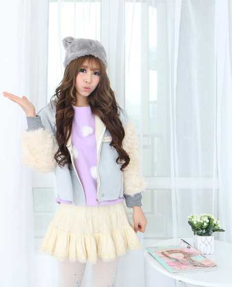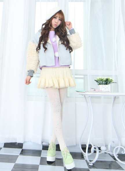 嫩蓝色的小清新短外套,内搭浪漫紫色毛衣,散发出迷人小清新气质,搭配百搭迷你短裙,穿出小清新超显高冬装,让矮个子MM轻松秀出高挑身形。