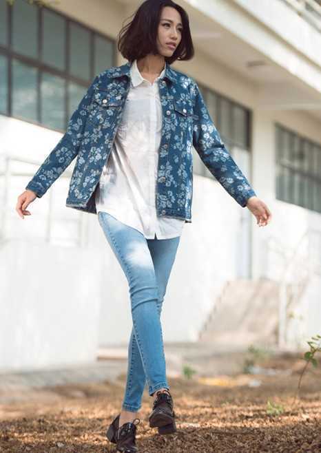 经典又不失时尚感的牛仔外套,搭配净白色衬衫,增添甜美气质,搭配简约蓝色牛仔裤,穿出不一样的独特装扮。