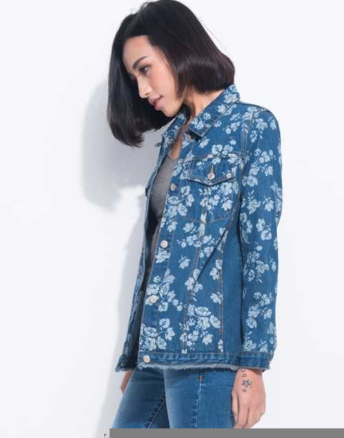 经典款复古花朵牛仔外套
