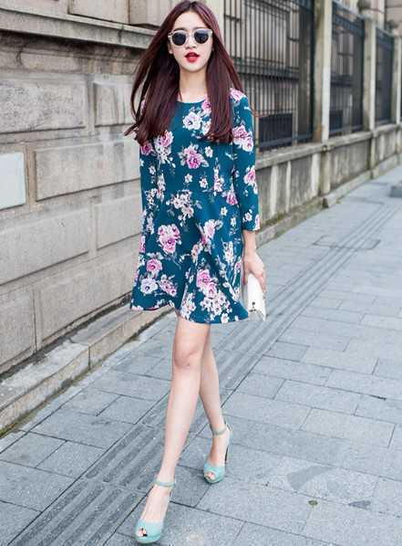 复古风的春季花朵连衣裙,很甜美可人,搭配淑女款薄荷蓝色高跟鞋,凸显高挑好身材,随意拎着时尚包包,轻松出游。