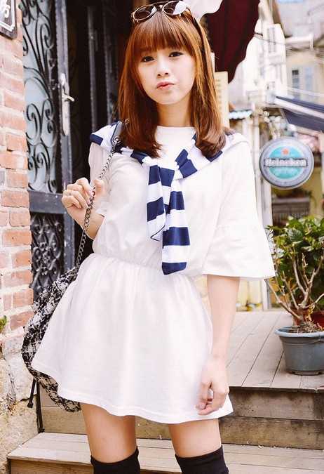 很随意清爽的春季休闲连衣裙,搭配条纹连帽绑带,凸显出时尚感,搭配时尚平底鞋,轻松穿出简约学院风出游装扮。