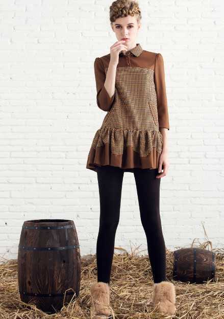 复古风春季棕色格子连衣裙,搭配黑色打底裤很显瘦,搭配奢华毛毛鞋,凸显出低奢华大气范儿,超有范的一身春季装扮,出游穿着时尚百倍呢!