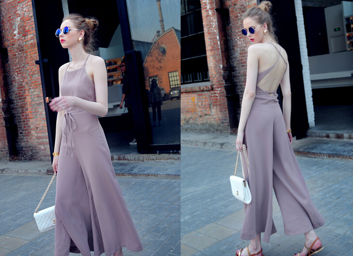 【欧美风搭配03】欧美国家的女生夏天最喜欢吊带类型的服饰搭配。性感露背的藕色连衣裤展现出令人无限遐想的性感女人味,搭配着白色的链条包包以及平底的凉鞋,整体的搭配造型十分地有质感大气高档。