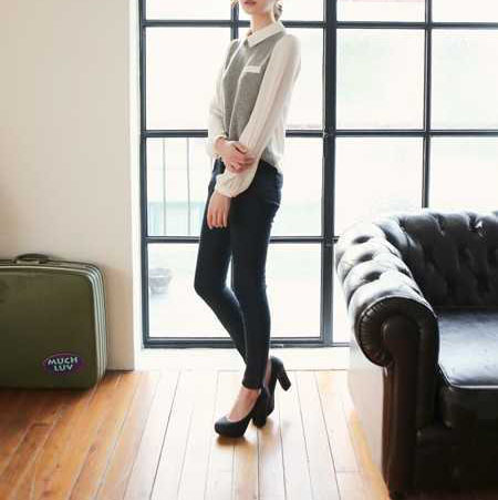 随意搭配上一条黑色紧身裤,一双黑色粗跟鞋,就能把女人的优雅和知性韵味都展现得惟妙惟肖。
