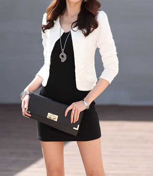 黑色打底,白色小西服加上一条毛衣链,十足的明星味,白色打底配上卡其色西装外套,独特、个性、perfect!