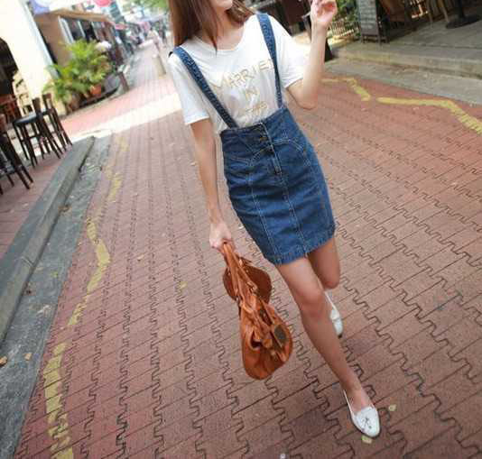 这款高腰的牛仔短裙完美吻合人体的曲线设计能让人看起来更加瘦,有两种穿法,背带可拆开。