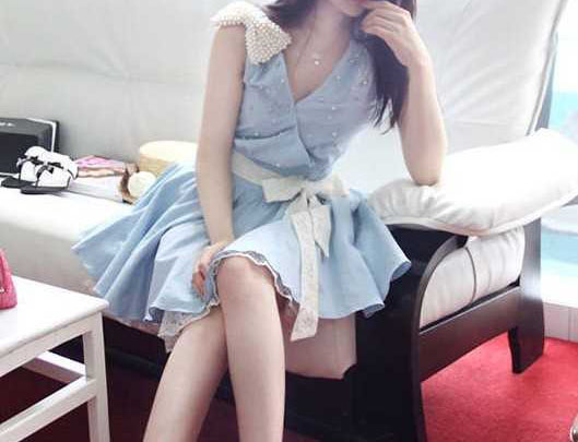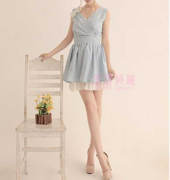 大大的蝴蝶结增加甜美气质,优雅的蕾丝花边装点更显女人,公主的裙摆设计甜美可爱,小性感的V领收腰,vivi的杂志款哦!