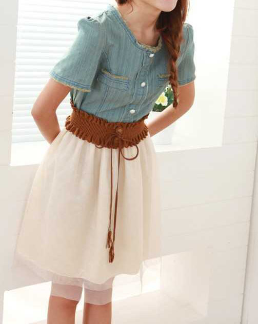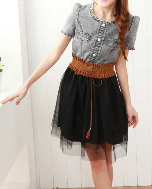 唯美的网纱拼接,和牛仔的不羁随意交织出不同的感觉,时尚又美感十足。瘦腰的设计可以凸显身材,高挑的女生穿更加有魅力哦!