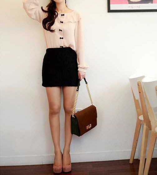 春天一定不能少了一件雪纺衫,搭配包臀半裙OL味道十足,粉色的高跟鞋可以让你气质更好,一个链条包包最佳搭配,简单但却很养眼。