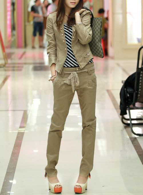 朵以最新的休闲搭配风格,喜欢自然中性调子女生一定要学习一下。军绿色的搭配可以很酷很酷哦~~