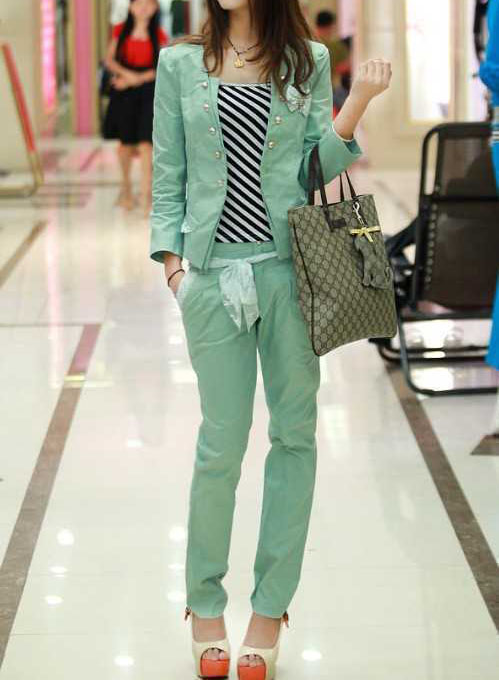 纯色系休闲套装搭配