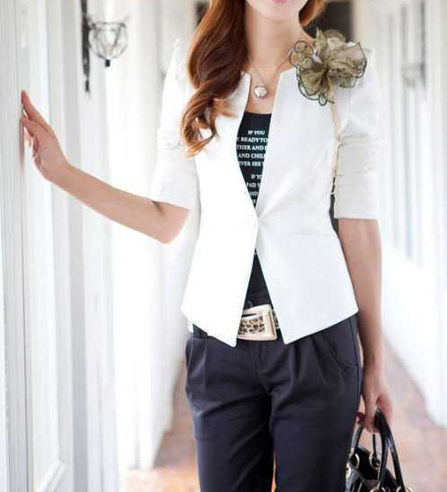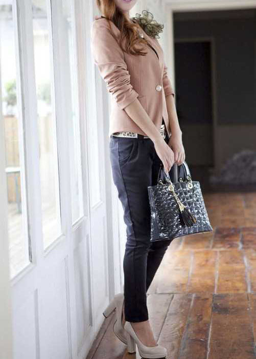 修身的小西装搭配小脚哈伦裤,简单优雅又很有个性,不会显得过于正式而显得呆板,透露出时尚女性的独立气质。