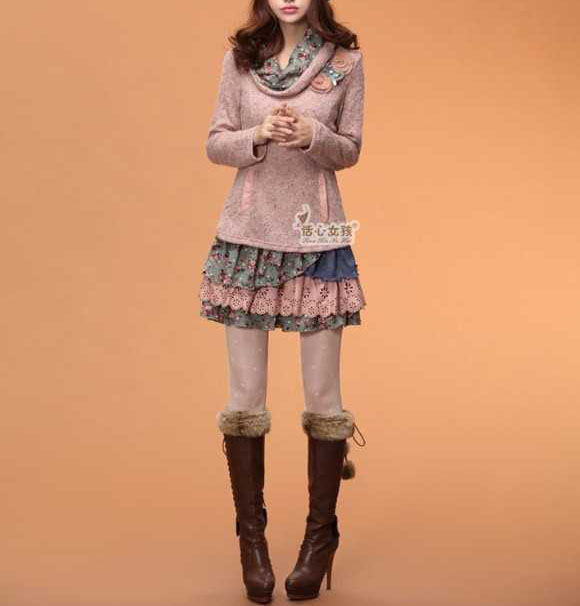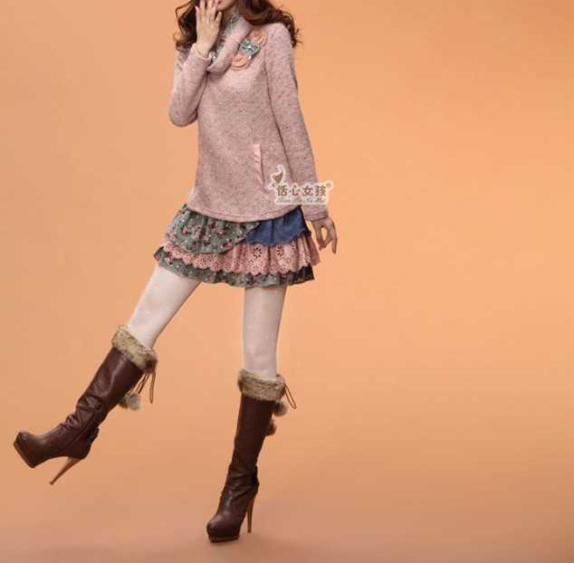 搭配贴士:下身搭配一条紧身丝袜,加上一双毛边的高跟筒靴,轻松打造最潮甜美公主范。