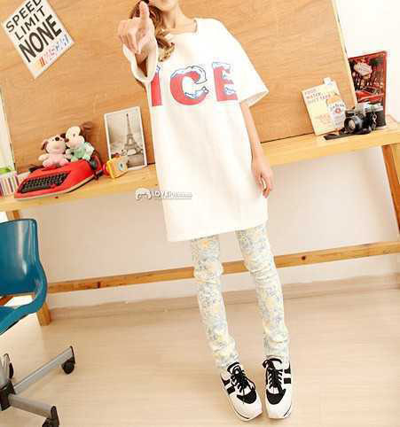 蓝白色的印花加上紧身的设计,这款裤子怎么能不成为2013年最潮单品呢?它能很可爱也能很知性哦~