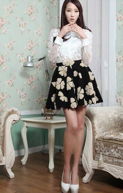 仙美的蕾丝公主领衬衫,搭配甜美感的五叶草毛呢短裙,凸显出玲珑有致好身材,白色高贵的高跟鞋 ,穿出甜美淑女范儿,轻松让你女汉子变淑女。