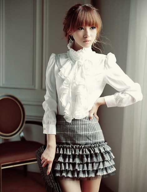 白色荷叶公主领衬衫