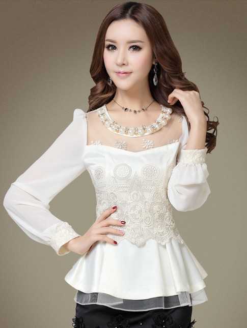 精美细腻的蕾丝点缀,时尚独特的透明领子设计,透露出小性感的锁骨,穿出时尚性感装扮。
