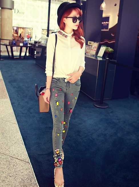 糖果色彩的娃娃领衬衫,凸显出时尚感十足,搭配糖果色点缀的时尚牛仔裤,一身炫彩的时尚感装扮,是初春穿衣打扮不可缺少的时尚搭配。