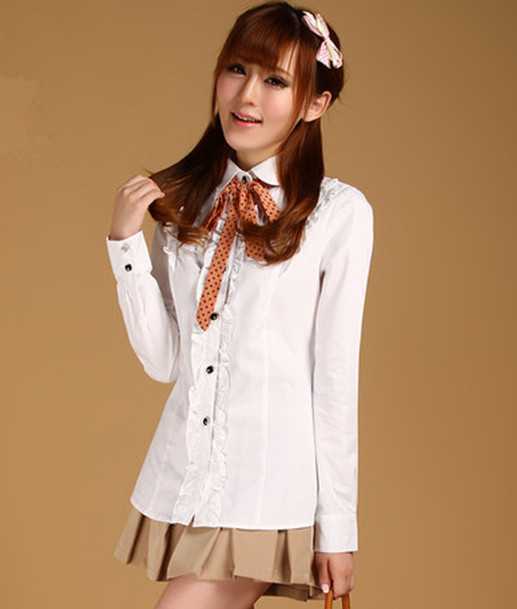 荷叶边点缀着的白色百搭衬衫,随意搭配轻松展现温婉淑女范儿。