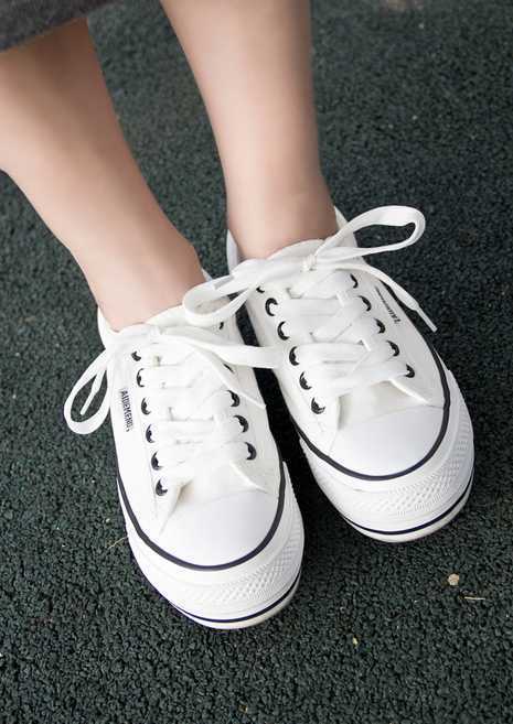 经典百搭的春季帆布鞋,纯白色的颜色,让人爱不惜手。