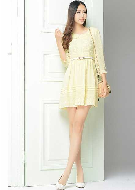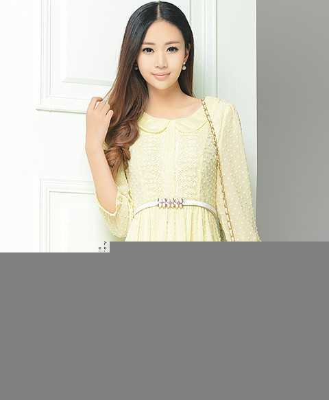亮眼黄色春季雪纺连衣裙,搭配高贵白色高跟鞋,穿出淑女时尚范儿,搭配白色时尚细腰带,凸显纤细腰身曲线,尽展出仙美女神范儿。