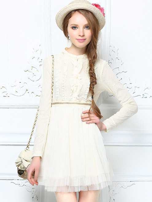 仙美的米白色春季雪纺连衣裙,不论是打底还是单穿都一样的好看时尚。
