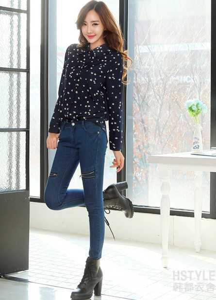 小甜美感的波点早春打底衬衫,搭配高腰时尚蓝色牛仔裤,穿出休闲时尚风,搭配黑色帅酷短靴,尽展不一样的时尚范儿,是早春必备的时尚单品。