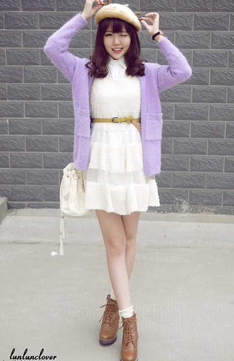 时尚仙美的公主裙,搭配浪漫紫色针织衫,给人一种青春活力感,轻松穿出乖乖女时尚范儿,搭配复古风棕色短靴,简单又时尚的搭配法,不妨学一学吧。
