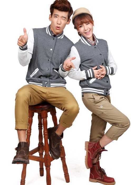 深灰色春季情侣棒球衫搭配