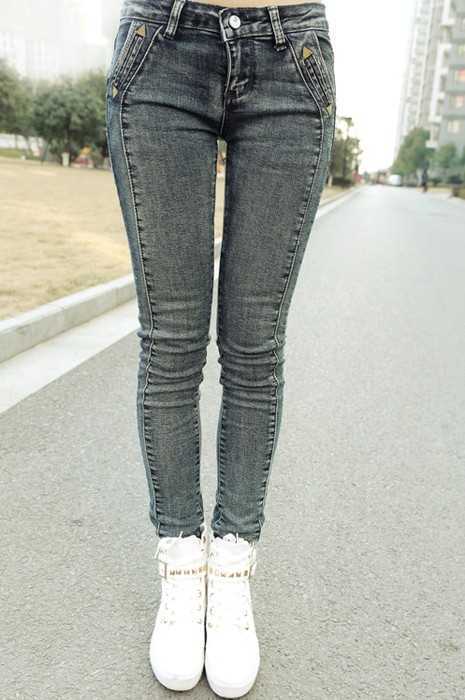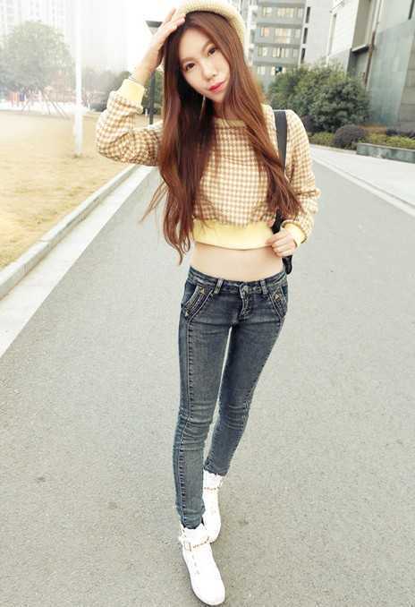 显瘦修身的韩版高腰牛仔裤,凸显出完美纤细腰部曲线,独特韩系的款式,高调秀出完美身材。