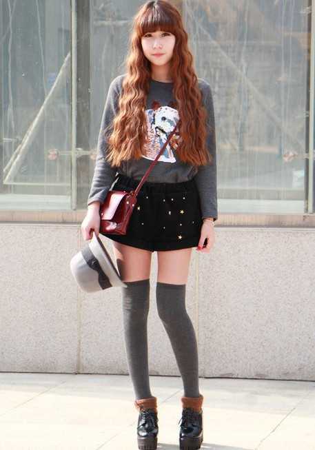 一身休闲淑女春装,相信是许多爱美MM们的最爱之款,百搭的卫衣搭配黑色包裙,搭配灰色过膝袜子,搭配厚底松糕鞋,简单又减龄的搭配,怎能让人不喜欢呢。