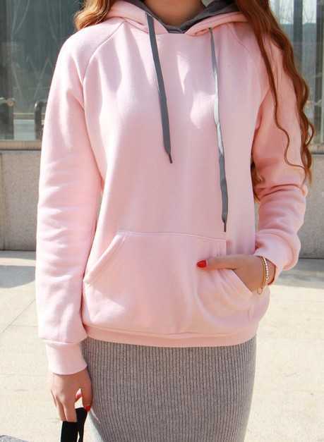 高档大气的粉色卫衣,贴心的口袋设计,独特的灰色连帽拉绳设计,不管怎么看都时尚!