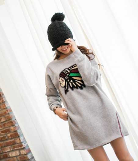 春季灰色长款卫衣,时尚的头像图案点缀着,凸显出时尚感十足,轻松让你穿出减龄装扮喔。