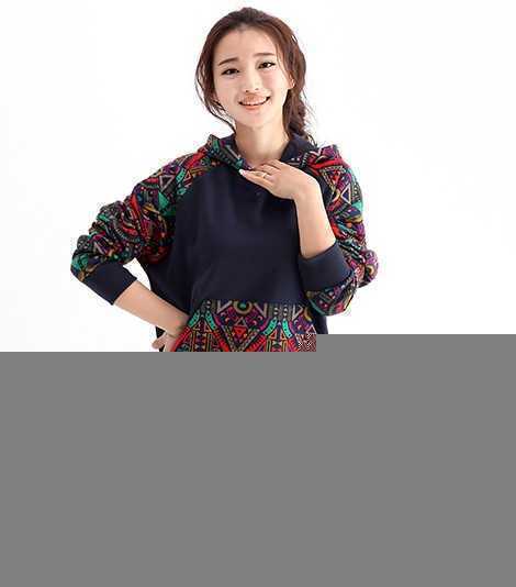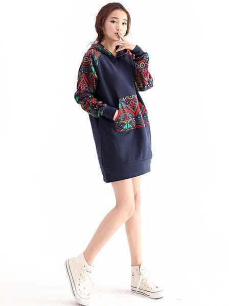 春季藏蓝色百搭长款卫衣,民族风的图案设计,穿出很复古的格调,不仅时尚还很减龄呢!