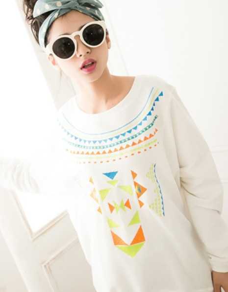 春季白色几何卫衣,给人一种清新可人的感觉,随意搭配很时尚好看呢!