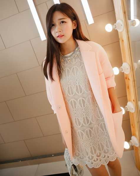 嫩粉色春季韩版西装外套