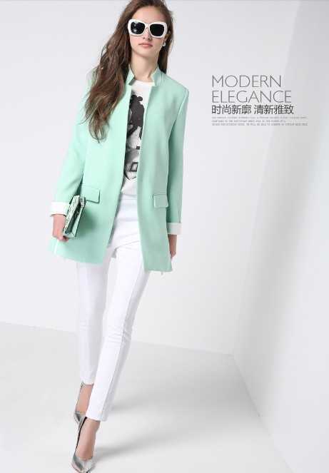 一款嫩绿色春季韩版西装外套,是时尚OL们必备单品。