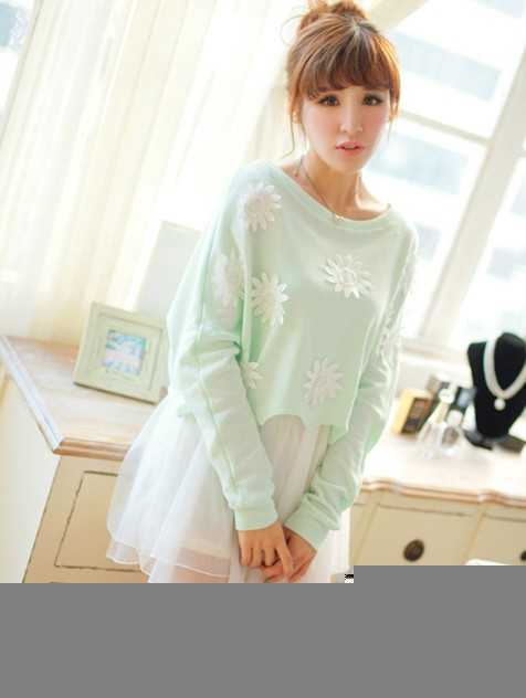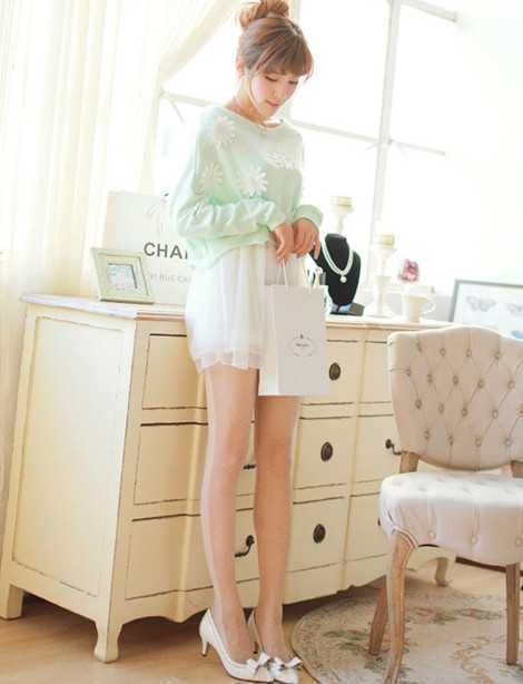 春季绿色套头卫衣长裙,给人一种小清新气息,搭配甜美蝴蝶结高跟鞋,很显高挑身材,完美演绎出时尚小公主范儿。