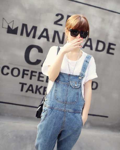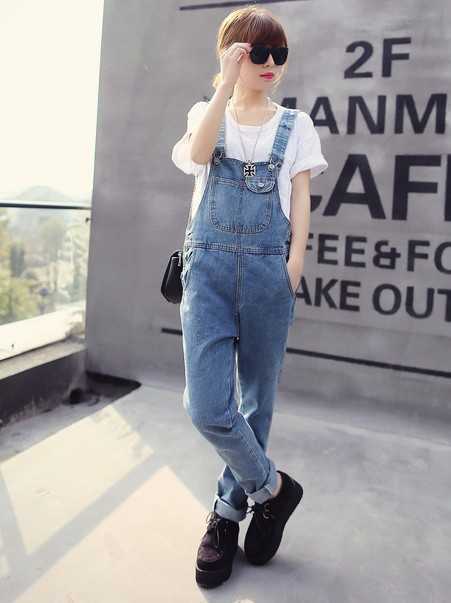 简约又清爽的春季打底短T恤,搭配俏皮可爱的牛仔背带裤,很减龄可爱呢,加上黑色时尚松糕鞋,营造出一种高挑的视觉感受,让你轻松穿出显甜美可爱感。