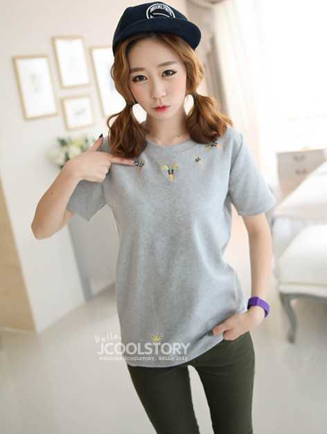 春季灰色打底短T恤,随意搭配穿出大气时尚感。