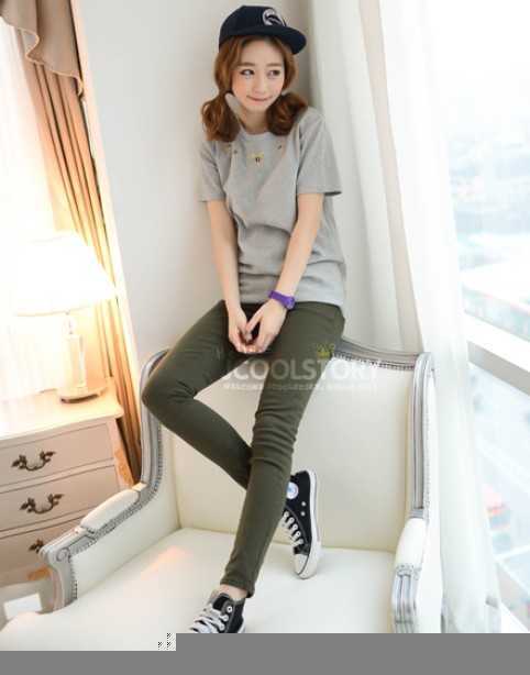 低调大气款的春季打底短T恤,搭配军绿色休闲裤,凸显出高挑好身材,加上舒适帆布鞋,很舒适时尚,是学生一族最爱的搭配法喔!
