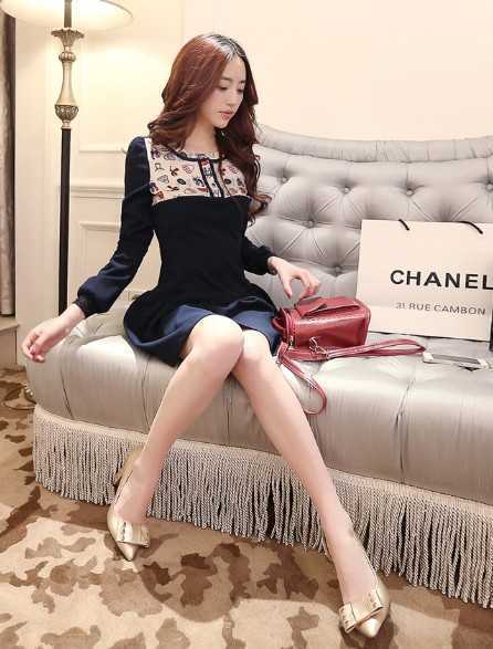 早春韩版连衣裙,高腰的设计,完美凸显出高挑好身材。