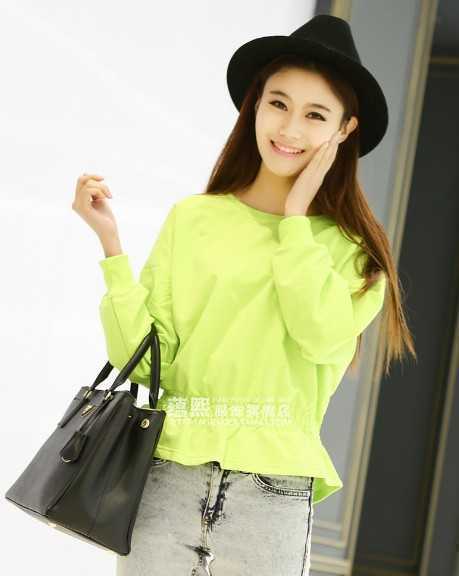 嫩绿色2014年春季休闲卫衣,给人一种清新扑鼻的感觉,搭配时尚牛仔裤,穿出休闲时尚风,是今年春季不错的约会装喔!