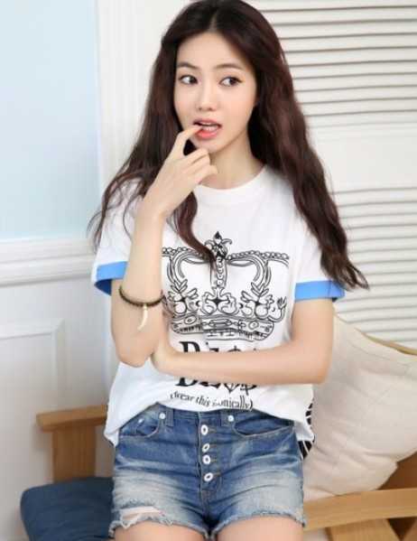 春季韩版休闲T恤衫,简约又大气,搭配帅气个性牛仔短裤,很随性时尚,加上运动风休闲鞋,让你轻松穿出率性时尚范儿。