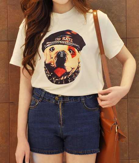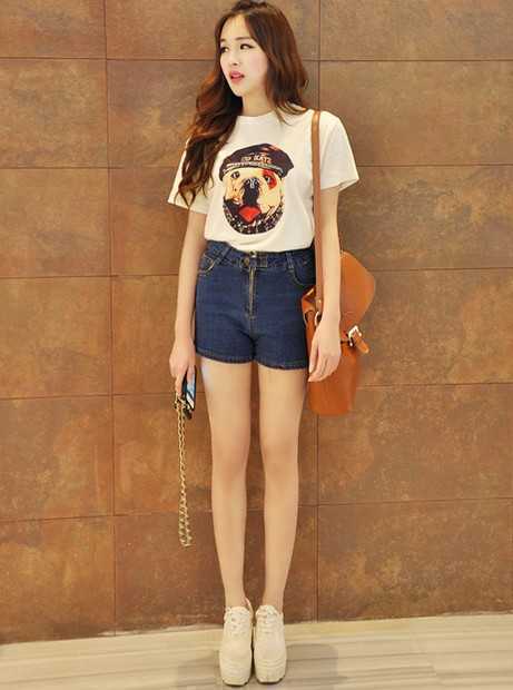 清爽白色早春新款短T恤,可爱的小狗图案更凸显出时尚感,搭配高腰韩版牛仔裤,完美拉长黄金比例,秀出高挑好身材,加上纯白色鞋子,一身清新亮丽的装扮很吸精呢!